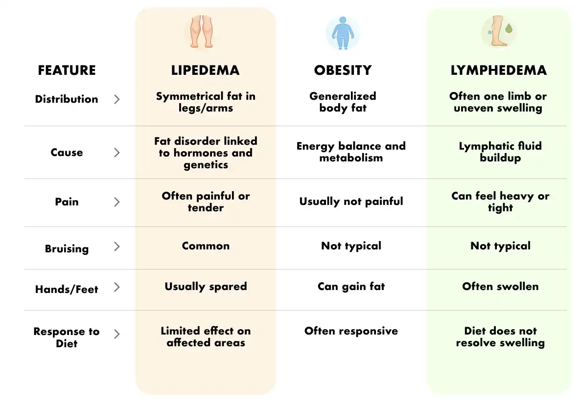 Understanding the differences between Lipedema, obesity, and lymphedema can help people recognize patterns earlier and begin seeking appropriate medical guidance.